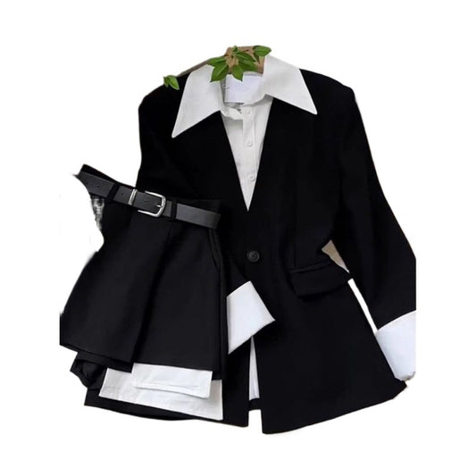 Light Mature Two-Piece Blazer & High-Waist Culottes Set
